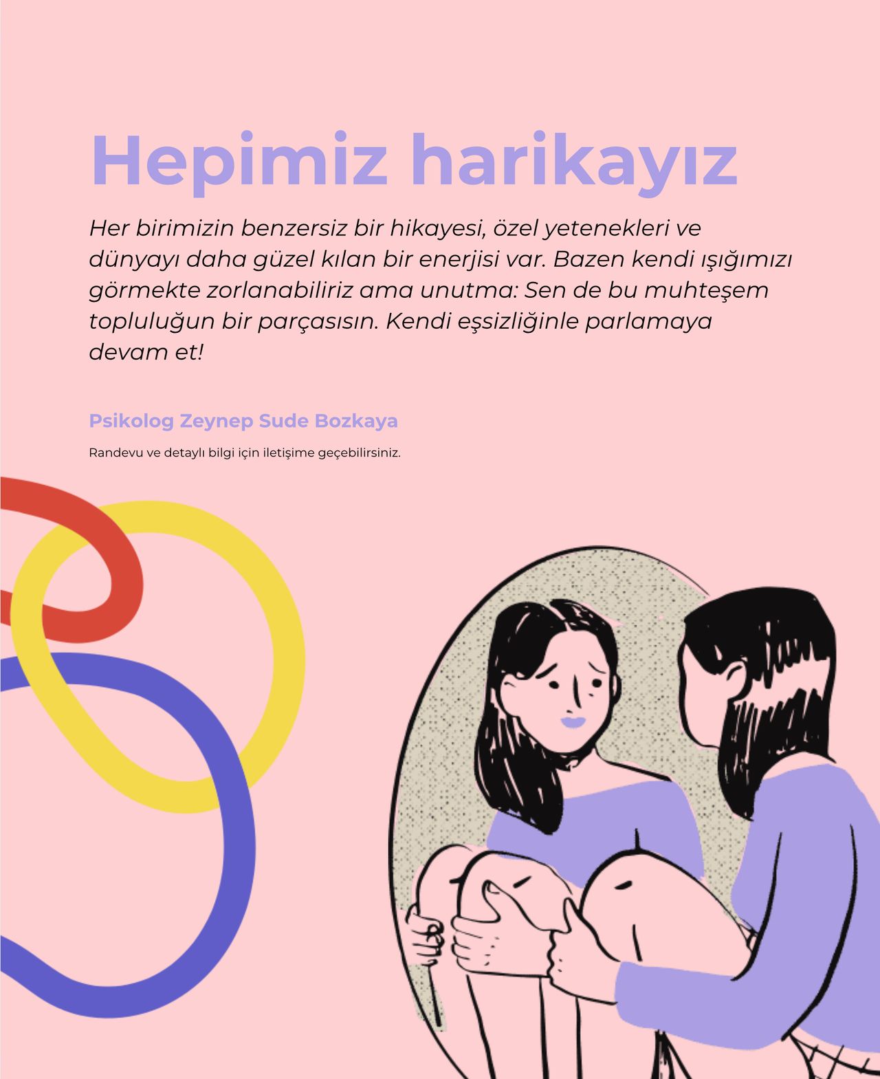 Bi önceki terapistim daha robot gibiydi ve bazen yargılandığımı hissettiriyordu bu tavrı. Ama Zeynep hanımla o kadar rahat hissediyorum ki gerçekten o bi saat sadece benim zamanım oluyor. Kendime olan inancım, saygım ve şefkatimin artmasında yanımda oldu. Ve daha 6 aydır çalışmamıza rağmen. Konumunun rahatlığı da artılardan biri.